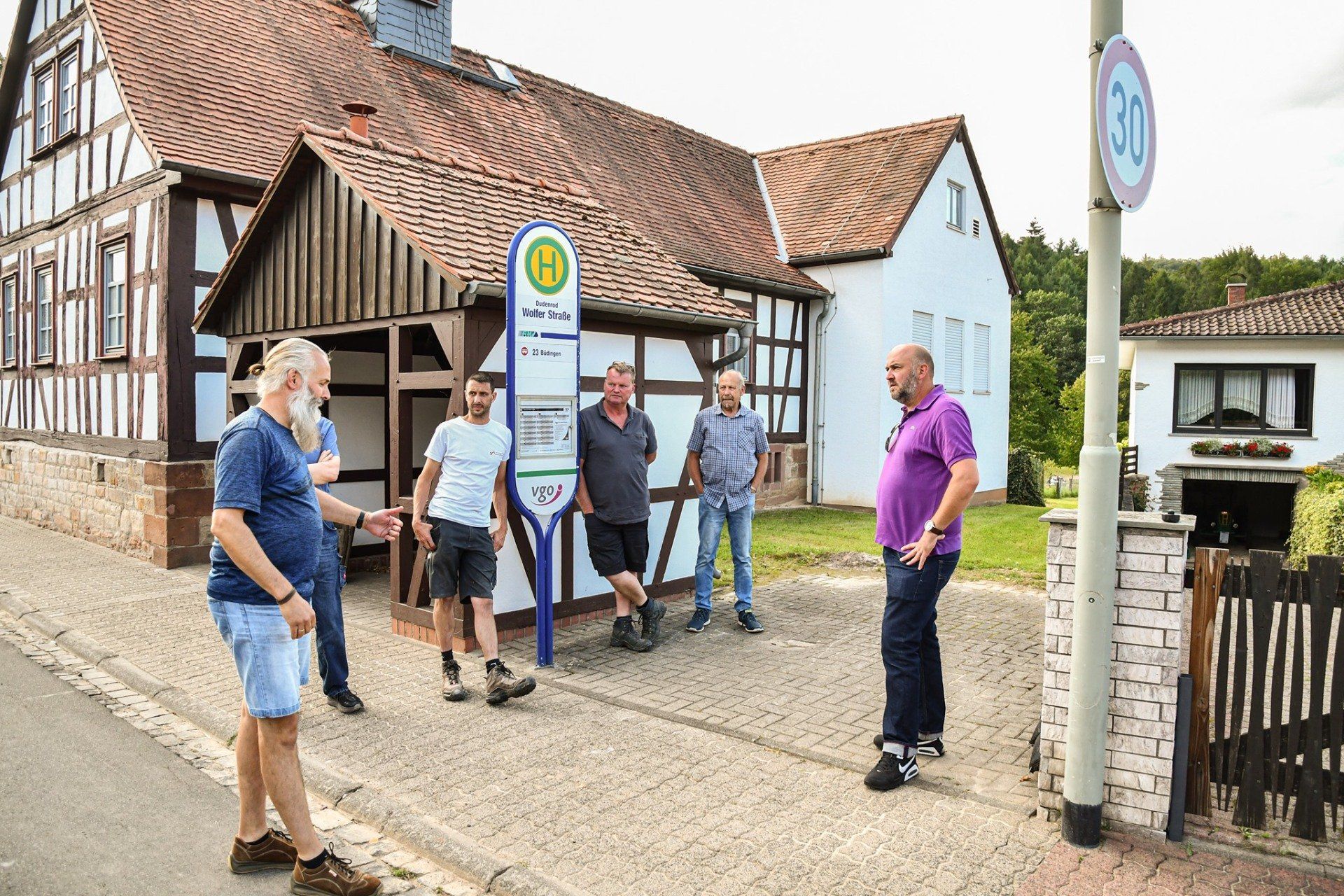 Im Rahmen des anschließenden Dorfrundganges fokussierte sich der Blick dann auf die neu gebaute Umgehungsstraße. Nicht wenige Verkehrsteilnehmende hätten den Streckenabschnitt zwischen Kreisverkehr und Ampelkreuzung zwischenzeitlich als persönliche Rennstrecke entdeckt. Die errichteten Lärmschutzelemente wurden lediglich auf einer Länge von knapp 100 Meter errichtet. „Für die Anwohnerinnen und Anwohner bedeute dies einen erheblich gesteigerten Lärmpegel“, schildert eine Bürgerin ihre Erfahrungen. Ein Thema, dem sich Ulrich Majunke intensiv widmen möchte. „Ich strebe an, dass sich der Büdinger Magistrat für eine Geschwindigkeitsbegrenzung auf diesem Streckenabschnitt einsetzt. Es muss das Ziel sein, die Lärmbelastung durch stark beschleunigende beziehungsweise abbremsende Fahrzeuge auf dem kurzen Abschnitt zwischen Ampelkreuzung und Kreisverkehr deutlich zu verringern. Weitere Lärmschutzmaßnahmen sollten ebenfalls umgehend geprüft werden.“