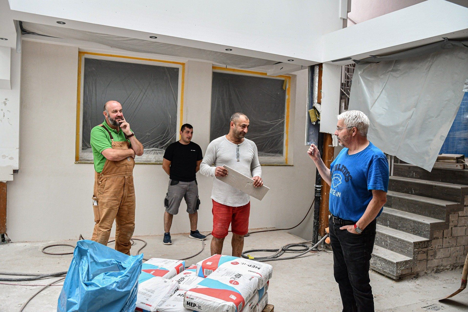 Ulrich Majunke informiert sich über den Sanierungsstand im Restaurant Bleffe